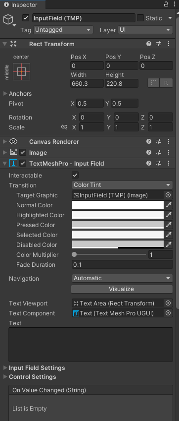The screenshot 3 showcases an input field that operates similarly to the one in screenshot 2 for transform and image functions. The Unity user interface’s input field features settings and events for changed values. The UI Toolkit input field serves as a text field where any string can be entered for use with C# scripting.